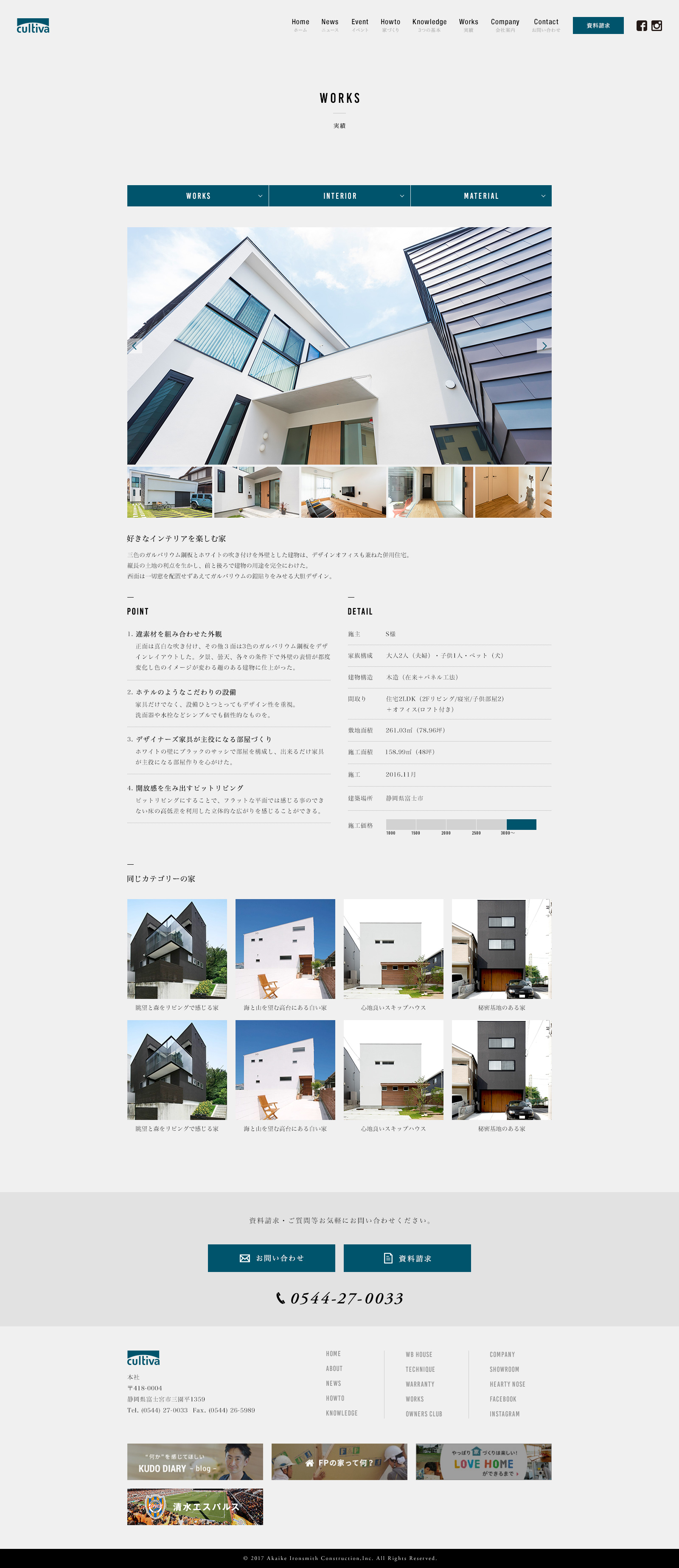 住宅や店舗の設計・施工を手掛けるデザイナーズブランド「cultiva」のサイトデザイン、コーディング、WordPress構築を担当しました。